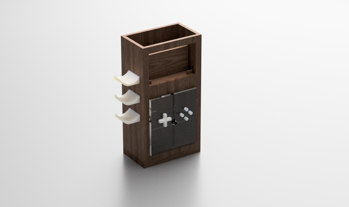 Inspired by traditional Gameboy aesthetics and existing Nintendo Switch organizers, this stand combines the best features of storage and functionality while introducing an innovative design. Perfect for shared spaces, it solves the challenge of limited screens with style and efficiency.
